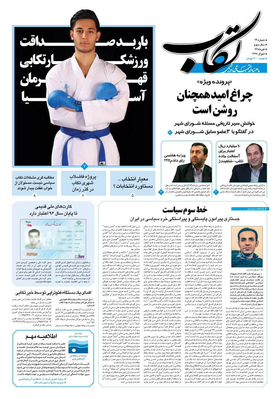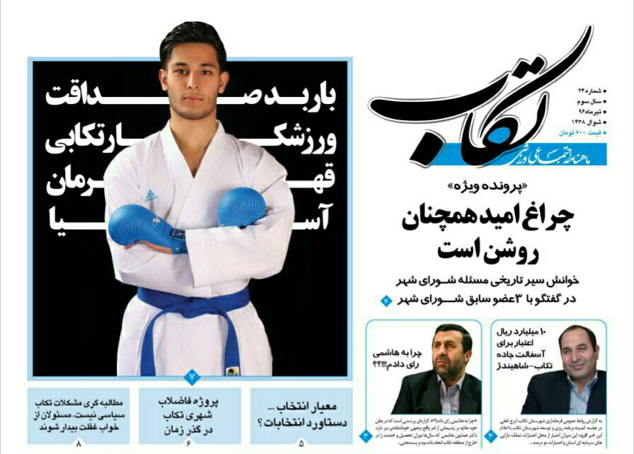ماهنامه تکاب منتشر شد / شماره 24 ماهنامه تکاب تیرماه 96