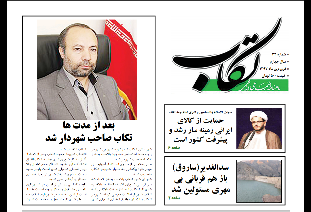 ماهنامه تکاب منتشر شد / شماره 32 ماهنامه تکاب فروردین97