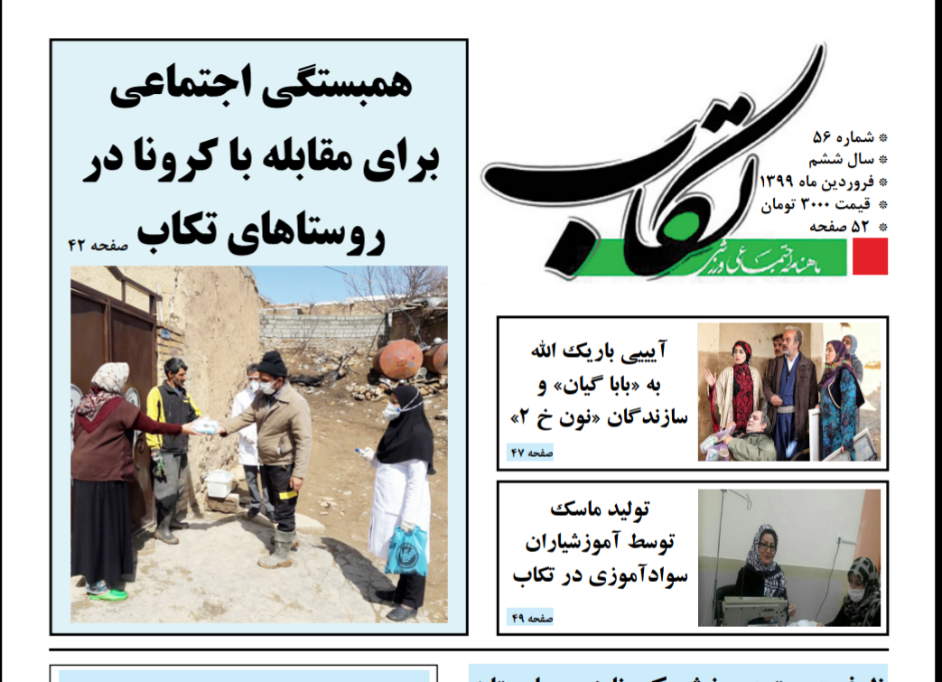 ماهنامه تکاب منتشر شد / شماره 56 ماهنامه تکاب فروردین 99