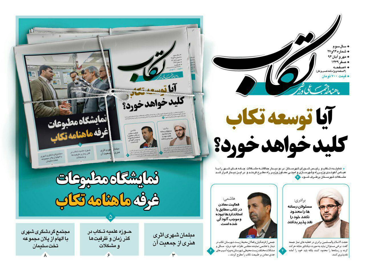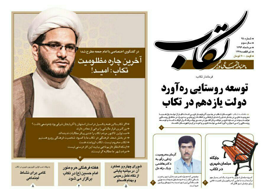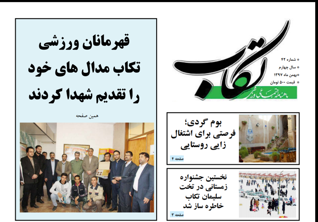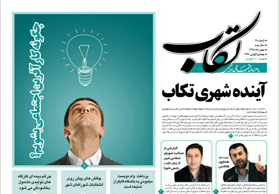 ماهنامه تکاب :تنها نشریه محلی و اختصاصی شهرتکاب با مجوز رسمی