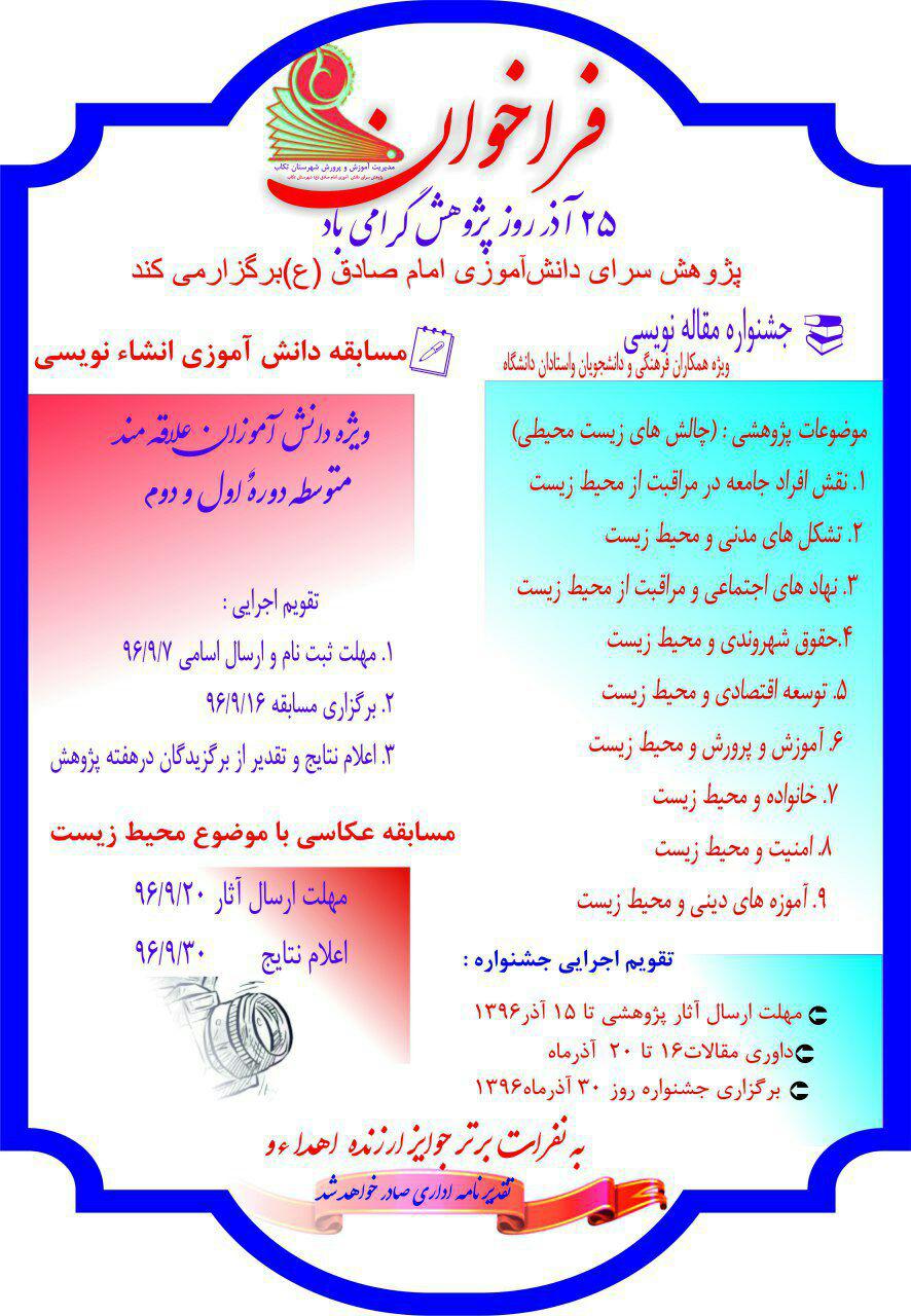 فضایی شاداب و بانشاط در مدارس ایجاد شود تا از این طریق شادمانی به جامعه تسری یابد.